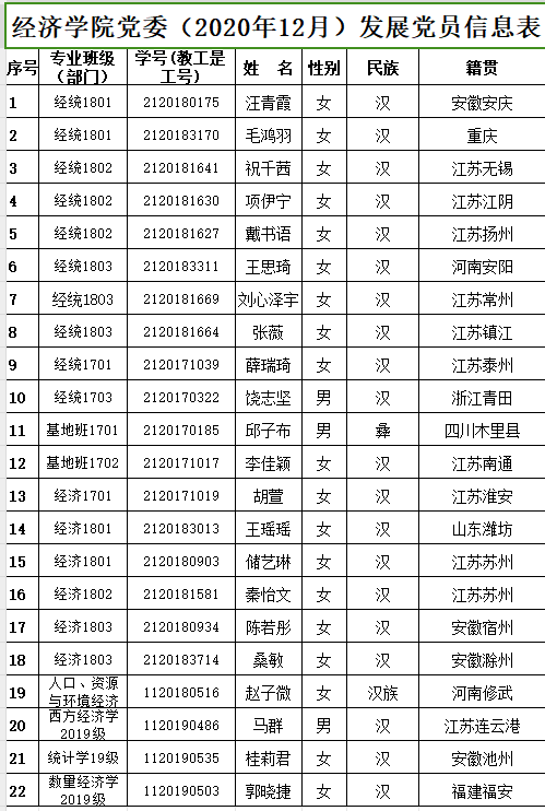 党委预审,拟接收汪青霞等22名同志为中共预备党员。现将名单予以公示: