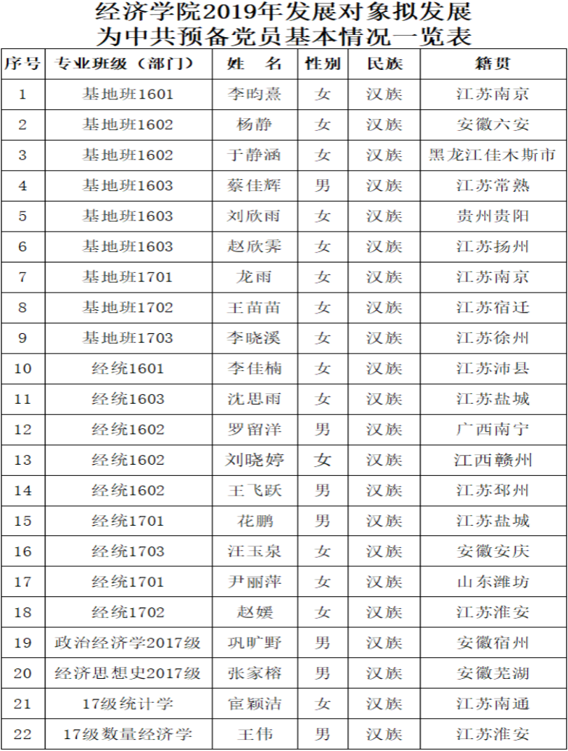 党委预审,拟接收李昀熹等22名同志为中共预备党员。现将名单予以公示: