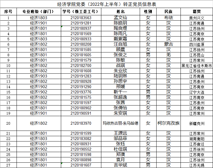 在听取党小组和党员、群众意见的基础上,经支部委员会审查同意,近期将召开支部大会,拟同意孟文仙等27名同志转为中共正式党员。根据发展党员工作有关要求,现将其有关情况公示如下: