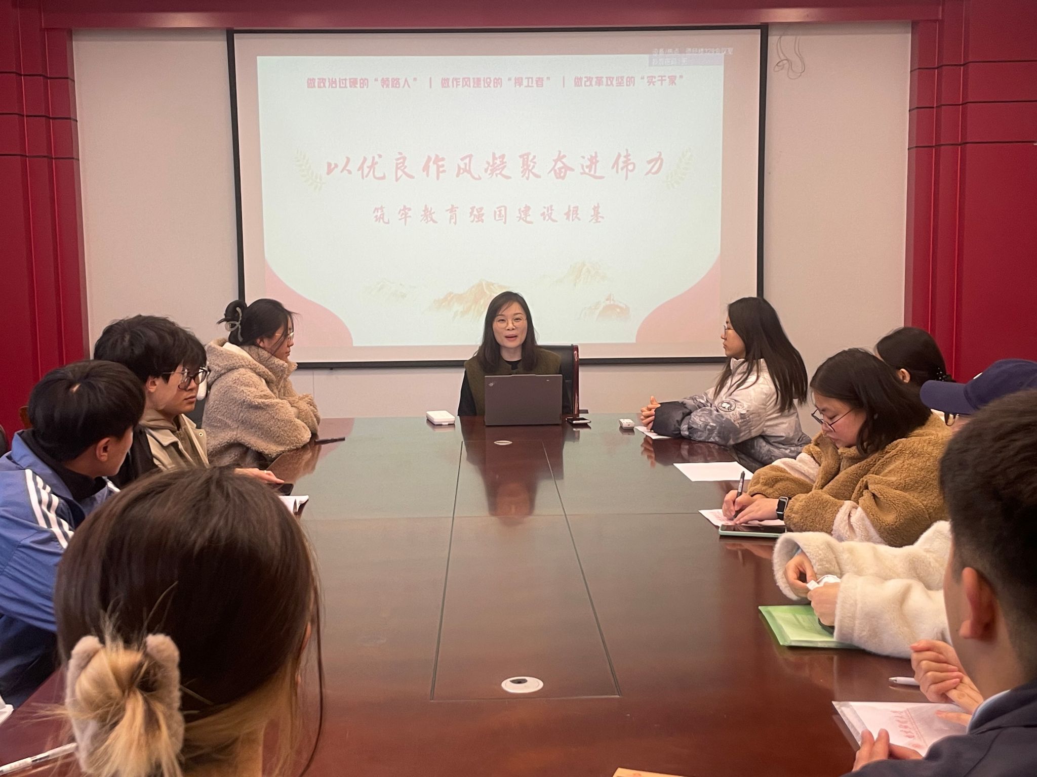 党委副书记、政治辅导员贾亦璞为“红苗学堂”一站式学生社区党支部党员讲授了深入贯彻中央八项规定精神学习教育的专题课程。