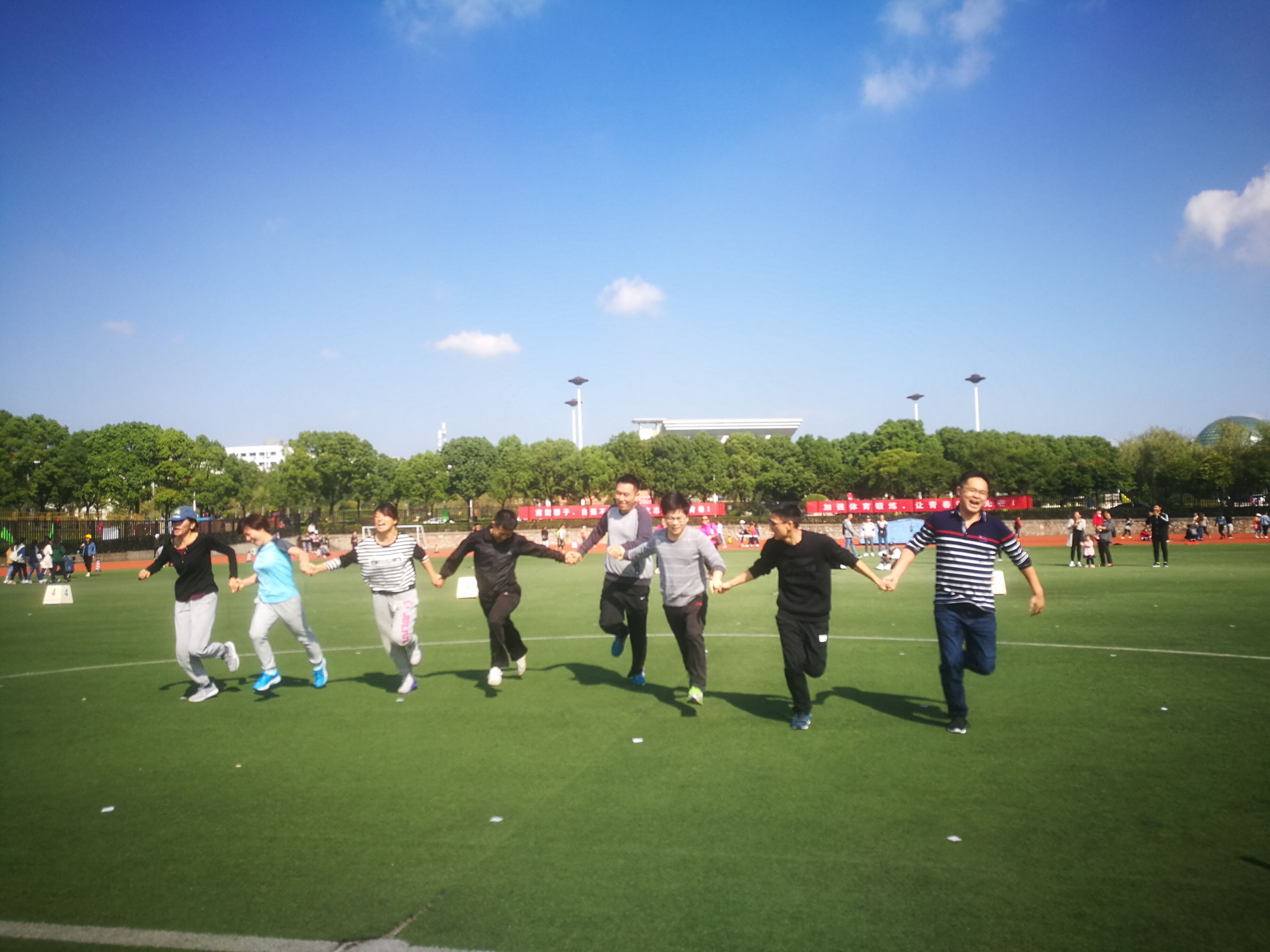 教师也身姿矫健各领风骚,教工组8×50米比赛现场,老师们各就各位,蓄势待发。海立方娱乐城