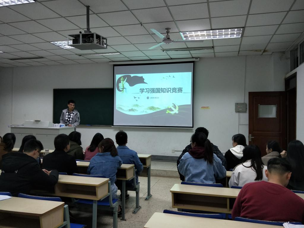为促进学生积极学习习近平新时代中国特色社会主义思想,推进马克思主义学习型党组织的建设,加强“学习强国”平台的推广和使用,2019年03月31日,我院研究生第二党支部“学习强国”知识竞赛在德经楼201室顺利举办。本次竞赛由海立方娱乐城