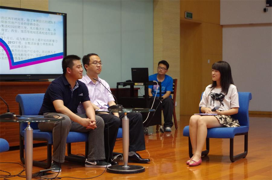 在分享会的现场,嘉宾们还分享了他们在成长之路上的故事,韩笑向大家阐述了读研与非读研经历的区别,他还提出了学习能力培养的重要性,建议同学们以进取宽容的心态,不断充电提升自我。许盼则用幽默诙谐的口吻给大家讲述了他的求职故事:“你们相信我入职世茂是因为我朗诵了一首诗吗?”“每个人的人生都需要自己来买单,要在不断的探索中寻找到适合自己的人生,用开放的心态接受每一个人”。