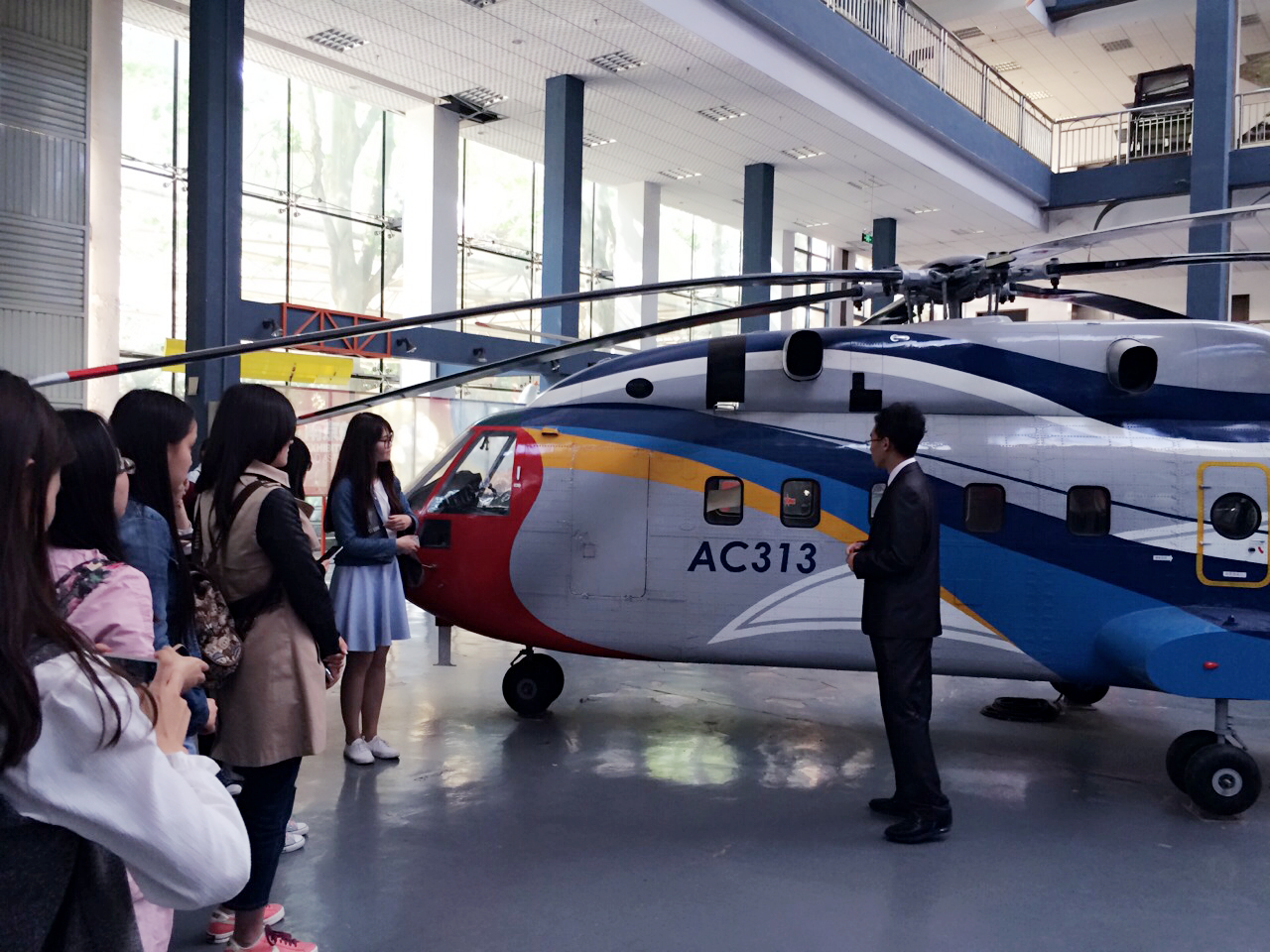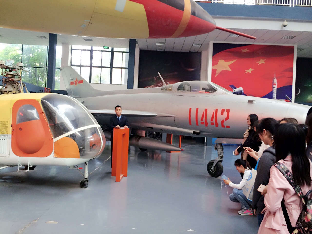 下午3点左右,师生们抵达了南京航空航天大学的航空航天馆,在现场讲解员的带领下参观了各类战斗机的模型以及曾经受战火洗礼后得以保存下来的实体机。通过详细幽默的讲解,同学们对我国航天航空事业的发展历程和最新进展都有了一定程度的了解,学习到许多关于航天航空方面的专业知识。同学们一边参观,一边讨论,并不时就专业术语向讲解员提出疑问。参观完毕后,党员葛同学感叹说:“以前只是在书本上、电视里看过非民用飞机,今天才走近历史,了解科技,同时也感受到那个时代的风风雨雨。”
