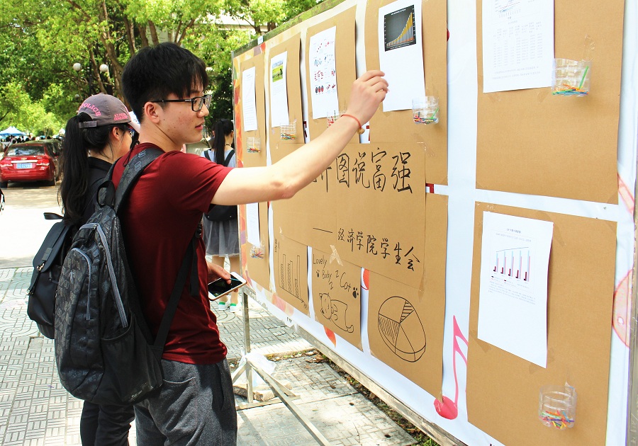 同学们结合专业实际,开展“一张统计图话富强”活动,同学们精心绘制出一张张统计图,直观生动地勾勒出我国的富强之路。