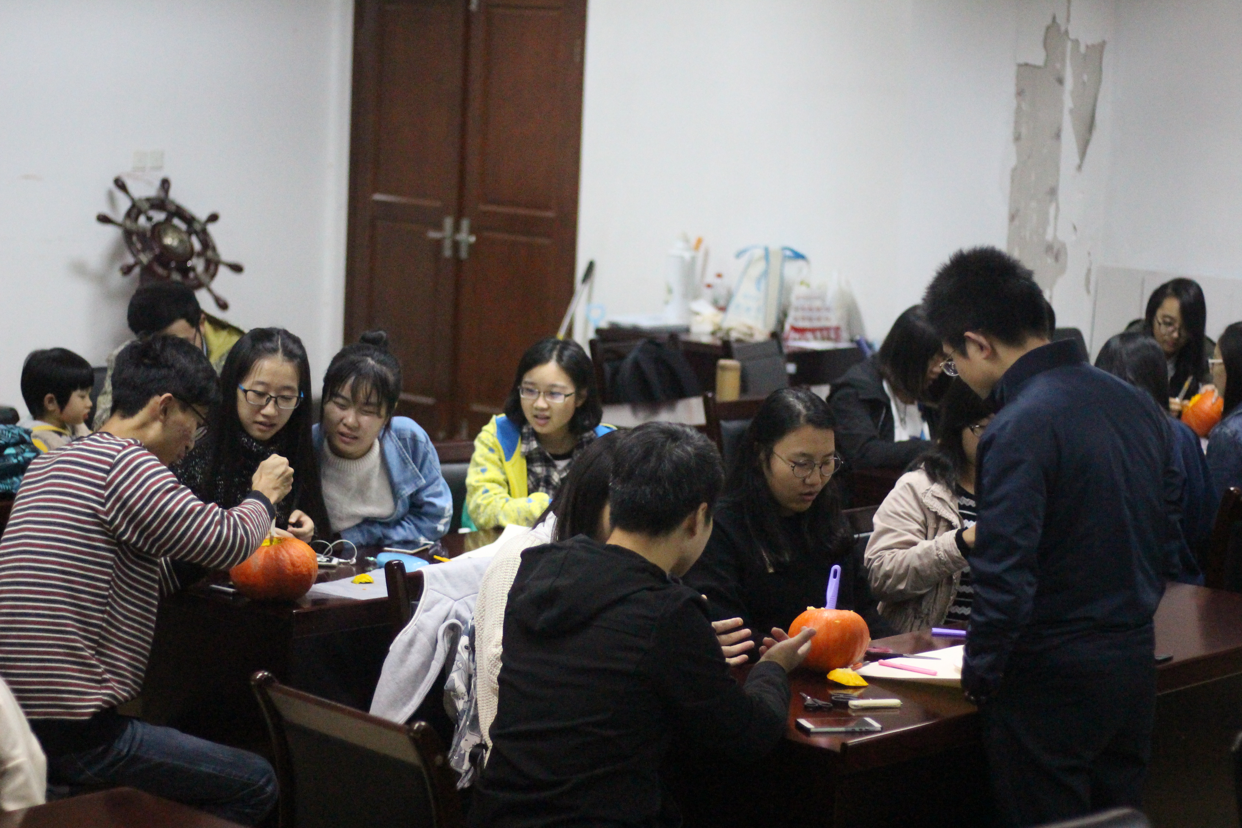 英语角的师生们在经济学科楼307室举办了制作南瓜灯活动。海立方娱乐城