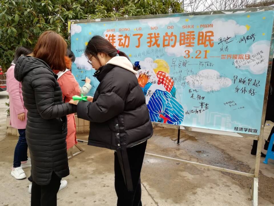 仙林校区中苑食堂外的广场,举办了“谁动了我的睡眠”为主题的世界睡眠日活动。