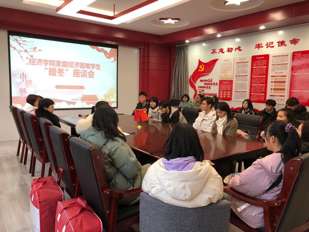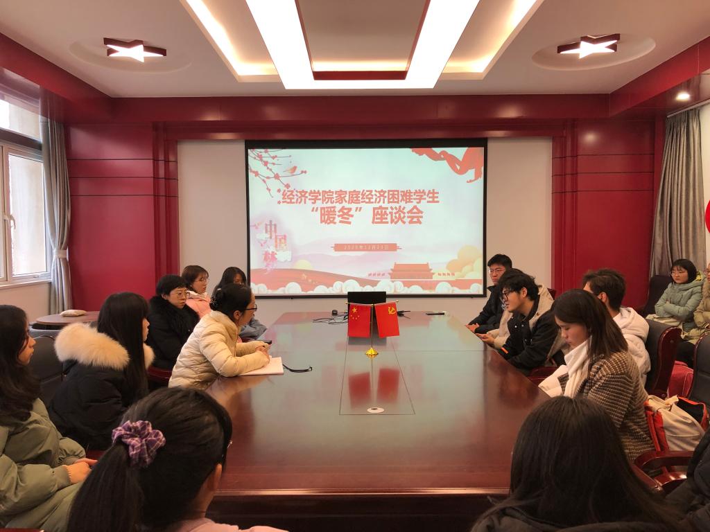 在德经楼329室举行家庭经济困难学生暖冬座谈会,党委副书记袁怡琨、学工办主任尹海燕、2020级辅导员陶海韵和全体2020级家庭经济困难学生参加了此次座谈会。