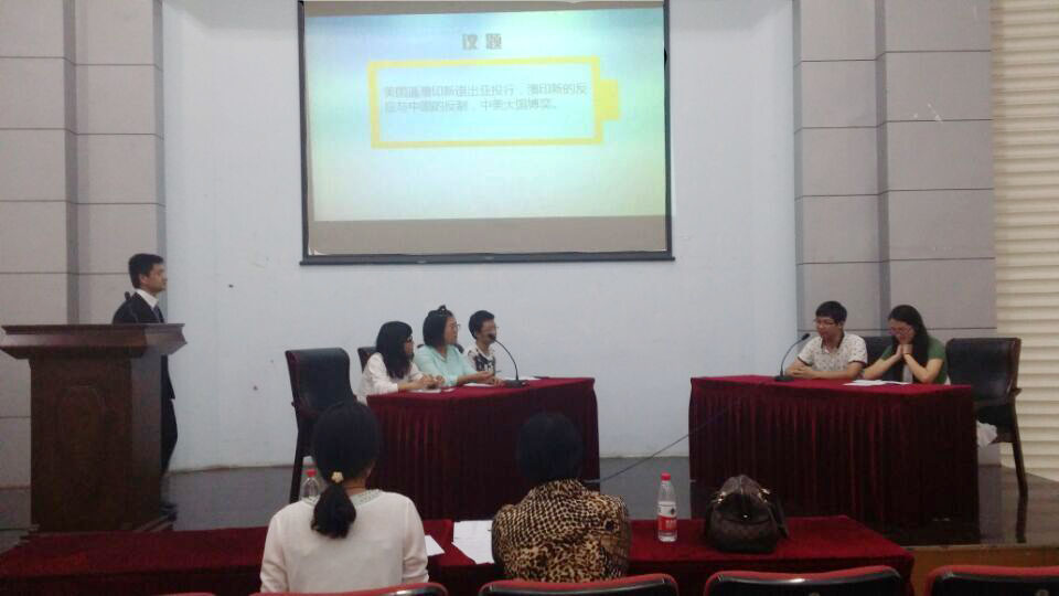 五组选手通过精彩的演讲与精美的ppt向我们向观众们全方位展示了自己所代表的国家。在观众提问环节,选手们巧妙与幽默的回答令在场所有人都大为赞叹。最后的议题辩论环节,展示了各组选手冷静严密的逻辑思维,给予了评委老师以及观众深刻的印象。