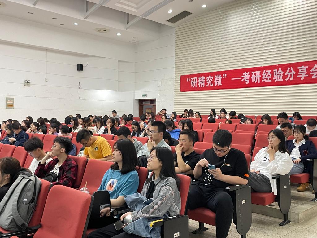 “研精究微——考研经验分享会”。活动邀请了被南京大学、上海财经大学、北京师范大学以及南京农业大学四所名校录取的龙雨、夏宇航、秦苏豫、郁莉莉四位考研优秀学生为同学们做经验分享,海立方娱乐城