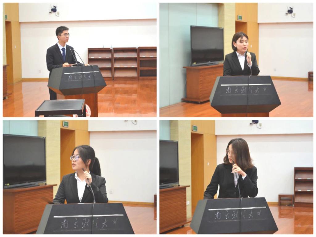 第一组,由办公室部长蒋雪飞同学和潘宇同学进行述职。办公室在团组织中负责活动材料与活动资料的收集和整理,两位部长以清晰的时间线回顾了部门内各项特色工作。其中,青马班系列活动旨在落实青马工程,增进学生对于青马班重要责任的理解,意义非凡。就内部建设而言,该部门对各位部员进行了专业的培训,按时开展例会、定期约谈,引导的同时积极鼓励部员自主策划活动,培养工作经验。