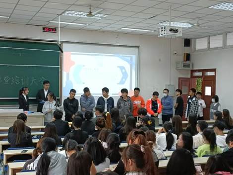 学生会主席团、各中心部长以及全体新志愿者们参加了本次大会。会议由综合事务中心熊美玲、戴文轩两位同学主持。