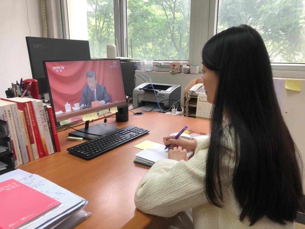 积极组织全院师生代表、各团支部、学生会及“两红两优”受表彰对象通过主会场、团支部分会场、自行收听收看等方式实时收看大会盛况,并召开座谈会畅谈学习心得。