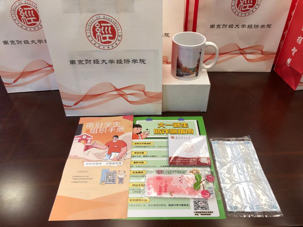 精心准备的口罩、纪念御守、杯子等等小礼物,饱含了对新生的祝福与期望。