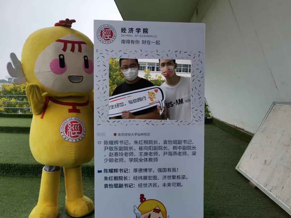 对每个新生的美好祝愿,希望每一个留下自己印记的新生都能度过美好的四年时光,不负年华,学业有成。初来乍到,新生难免有些羞涩,但对经院吉祥物小经灵发出的合影邀请,却没有人会摇头拒绝。在打卡框下,是海立方娱乐城