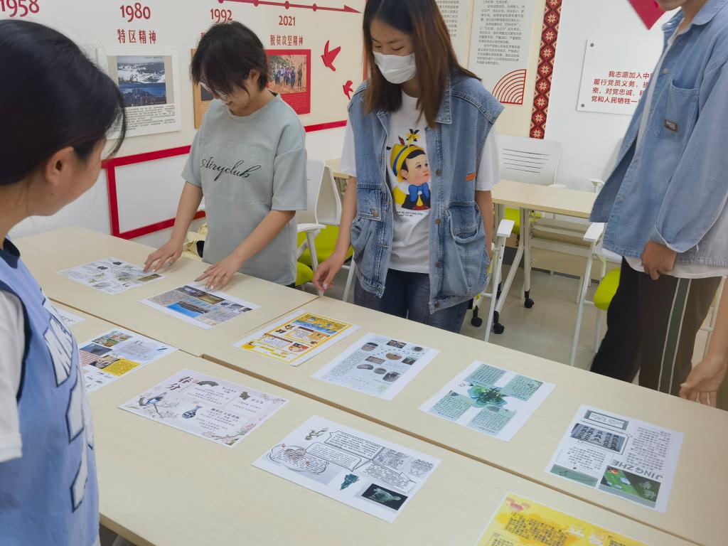活动前期,同学们收集展现四季情思的“时节绘画”、承载古人浪漫的节气文物和体现农耕生产的艺术作品等,自主选择节气主题并制作手帐,如清明植树、处暑积肥、秋分种麦等,对馆藏文物节气元素进行提取运用,制作成精美的笺谱与手账。在展览现场,同学们相互交流创作理念,深入了解传统技艺及馆藏文物背后的文化底蕴,在学习贯彻习近平新时代中国特色社会主义思想主题教育中上了一堂生动的文化自信课。