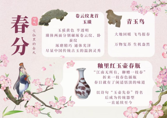 数经2101张潇丹同学选取了玉器及瓷器文物。玉与瓷的温润内敛,似春日的温婉含蓄,清风拂散的薄云、忽而飞至的玄鸟、瓶中的一枝春色都在其间。