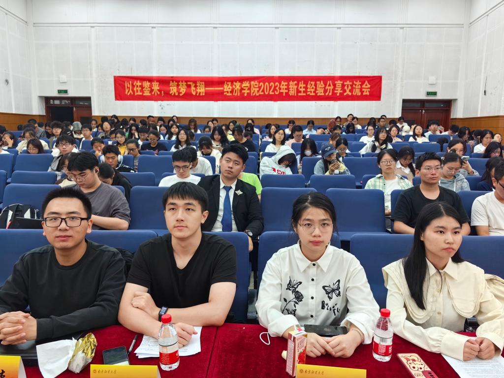 于德济楼二楼报告厅举办了“以往鉴来,筑梦飞翔”新生经验分享交流会。本次活动邀请了经济2101班的徐晓宁同学,数经2101班的张雅玲同学,经统2102班的游涛同学和数统2101班的王星杰同学作为嘉宾分享宝贵经验,海立方娱乐城