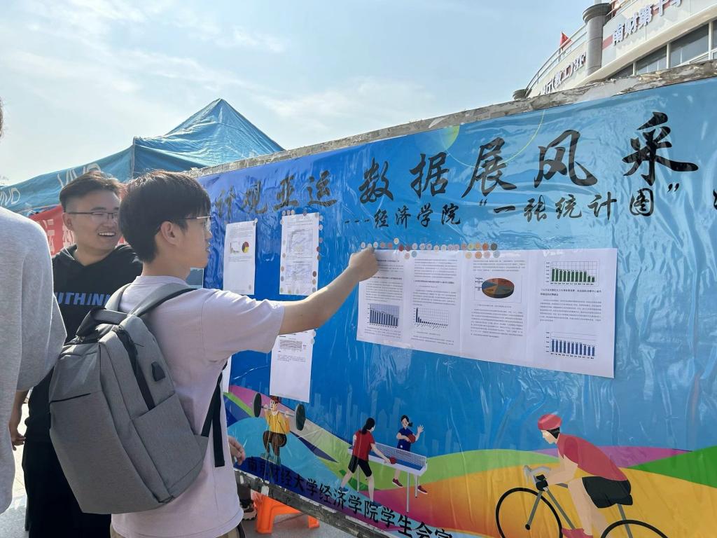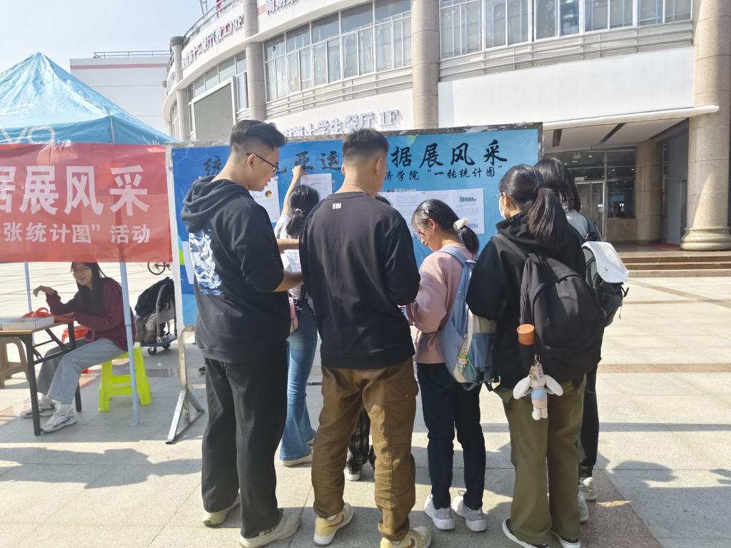 为引导同学们学以致用,将专业知识与亚运时事充分结合,开拓国际视野,培养独立思考的能力,院学生会于10月24日中午在中苑食堂门口开展“统计观亚运,数据展风采”统计图展示与投票活动。