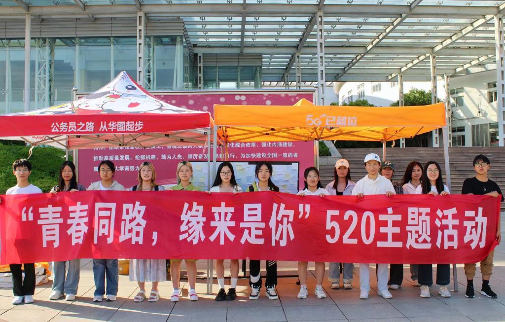 于西苑、中苑食堂门口和大学生活动中心广场开展“青春同路,缘来是你”520主题活动,在520表白日和525大学生心理健康日到来之际,为大学生搭建互动交流平台,在忙碌的学习生活中让青年学子们感受到来自身边的关爱和温暖。