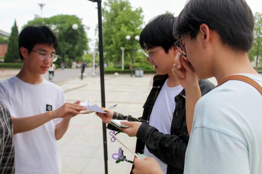 最后,在大学生活动中心广场,同学们现场制作扭扭棒花束。虽然手工制作的花束并不完美,但这是时间的馈赠,是心意的灌注,独一无二的。除了制作扭扭棒花束,一旁的diy漆扇也可供同学们选择。总之,手工制作的过程十分治愈,同学们感受着太阳的暖意,感受着生活的美好,让心灵得到抚慰。