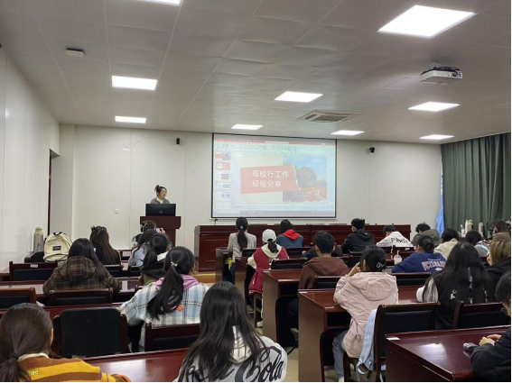 还邀请了2024年寒假招生宣传专项实践活动优秀团队队长金融2103翟方方同学分享活动经验,翟方方同学在队伍人员构成、活动组织安排、母校老师对接、摄影摄像宣传等方面,给在座的同学们提供了丰富的意见和建议。