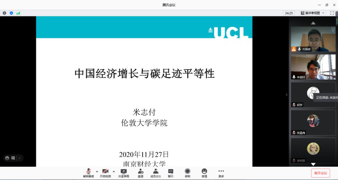 米志付副教授在腾讯会议平台作了题为“中国经济增长与碳足迹平等性”的学术讲座。海立方娱乐城