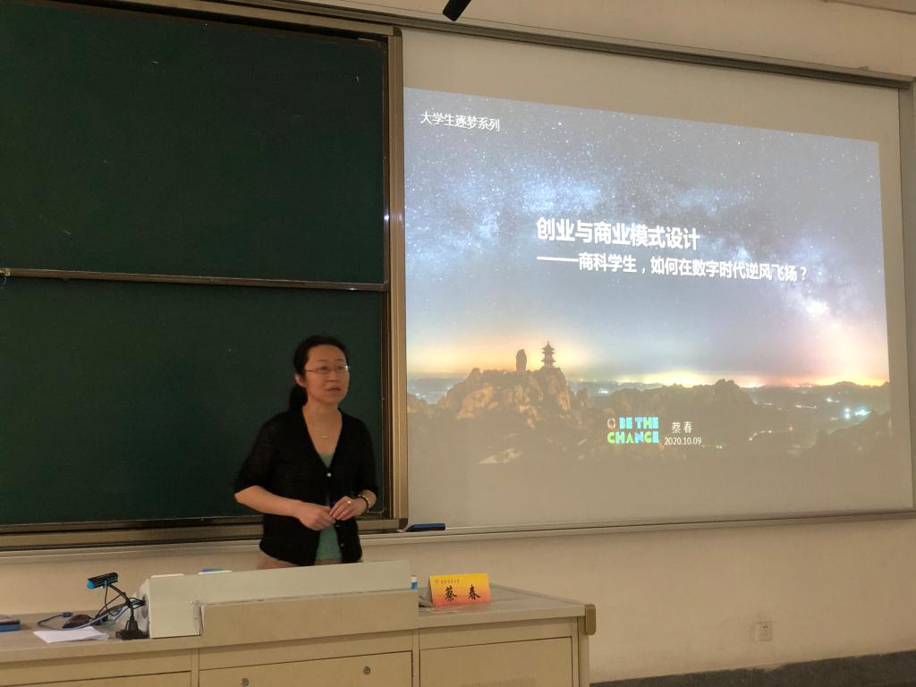 应用统计专业校外硕士研究生导师、广州智联网联盟发起人/副会长,MA Club企投家联盟核心发起人蔡春女士在仙林校区德济楼101教室作了题为“创业与商业模式设计——商科学生,如何在数字时代逆风飞扬?”的讲座。讲座由海立方娱乐城