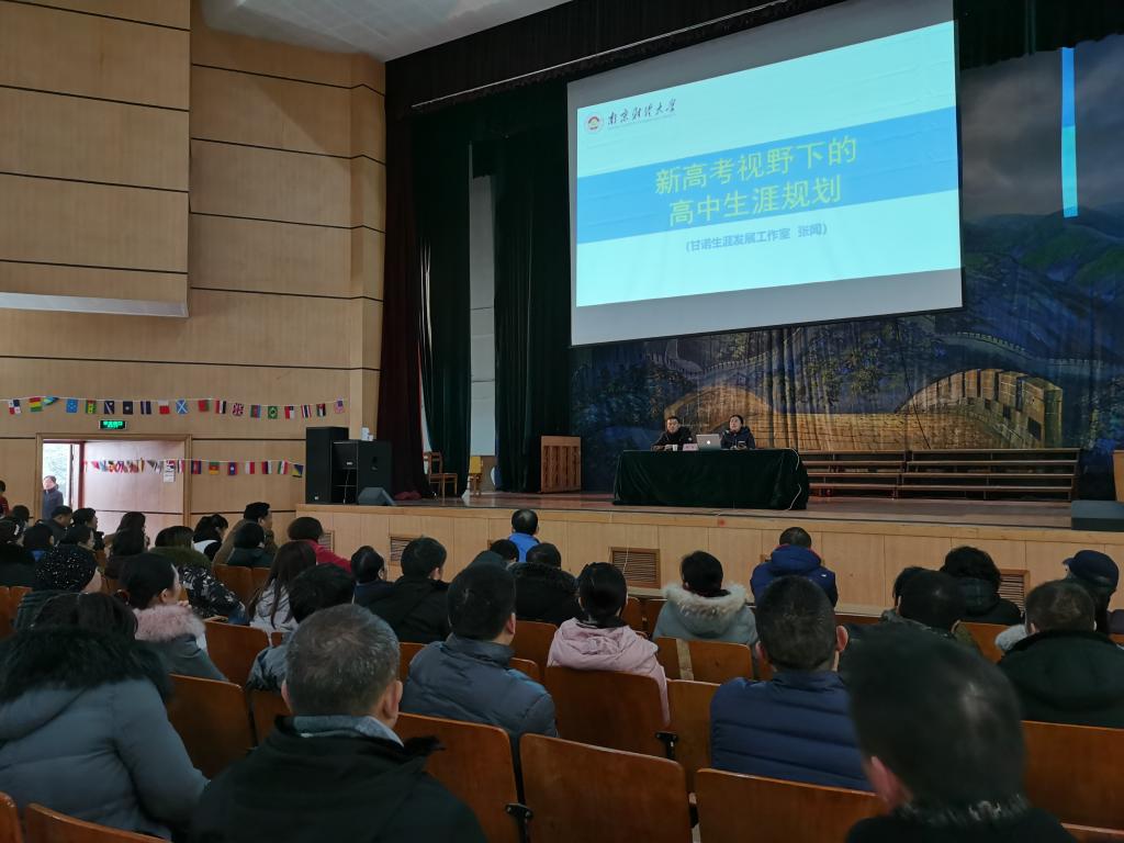 优质生源基地——徐州市第一中学,走进该校“家长课堂”,开展主题为《新高考视野下的高中生涯规划》讲座,向高一、高二学生家长解读新高考政策,吸引200余名学生家长参加。
