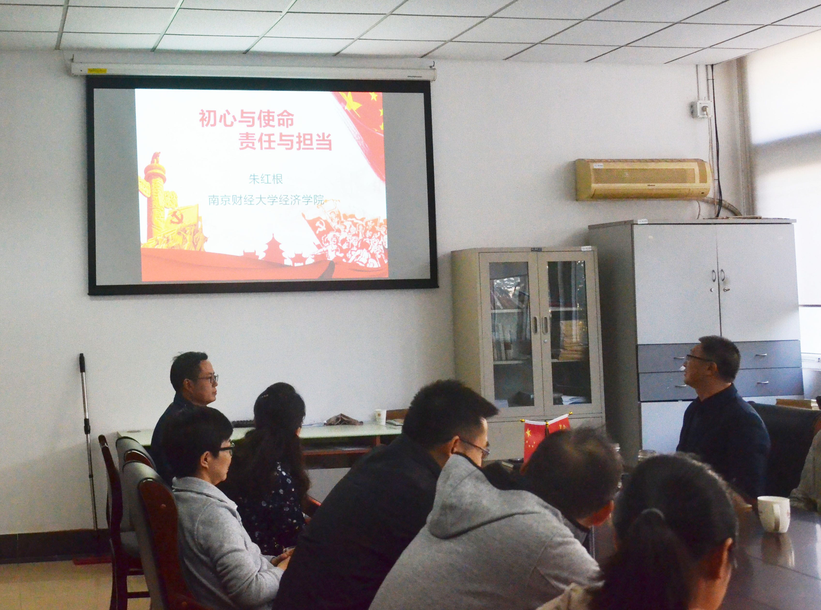 朱红根院长和张成副院长分别为经济学系教工支部的广大党员讲授党课。经济学系教工支部全体党员参加了本次党课学习活动。