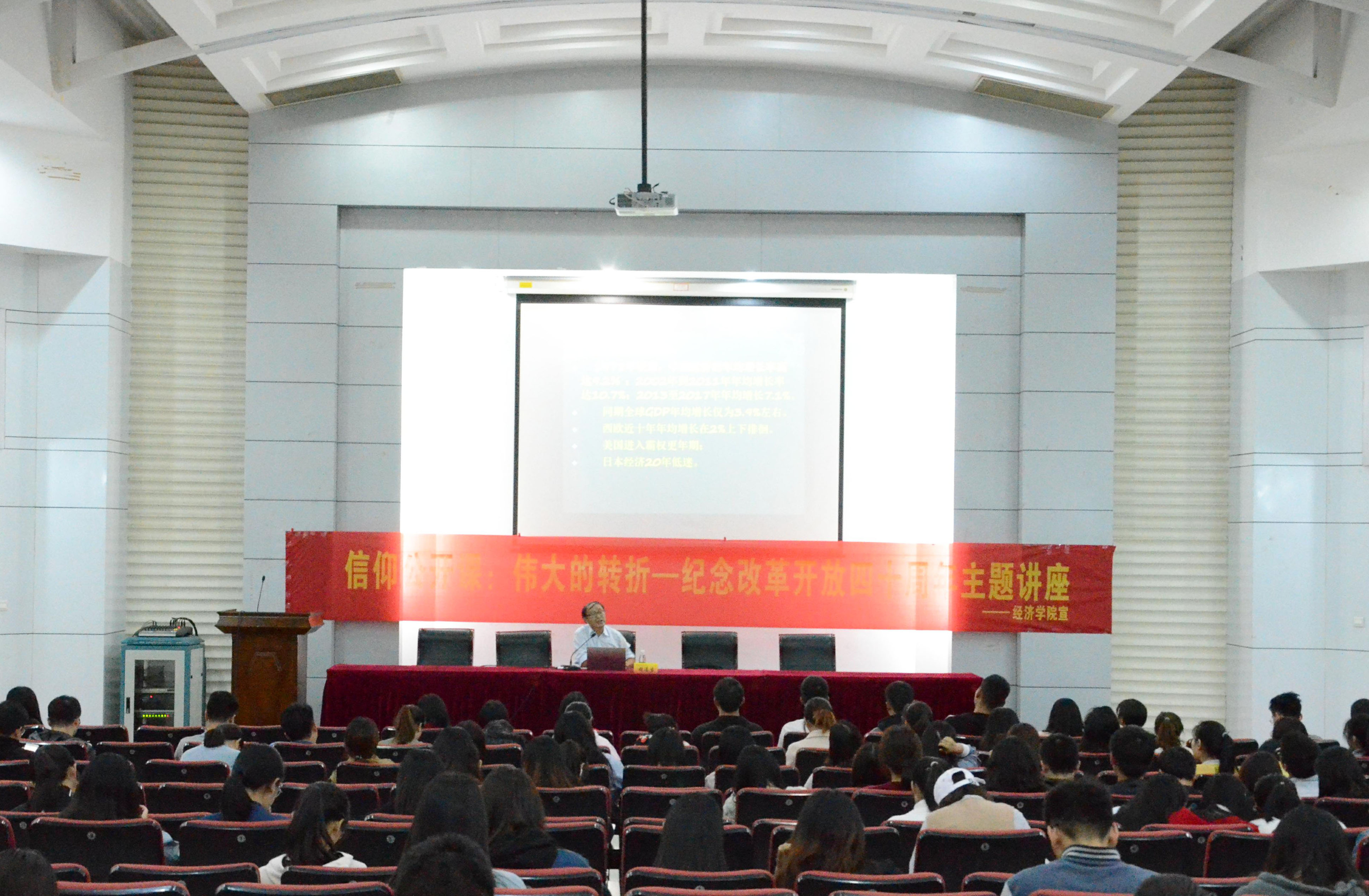 胡连生教授受邀,于德经楼报告厅作了题为“中国特色社会主义事业,开创马克思主义新境界——庆祝改革开放四十周年”的信仰公开课。此次讲座由海立方娱乐城