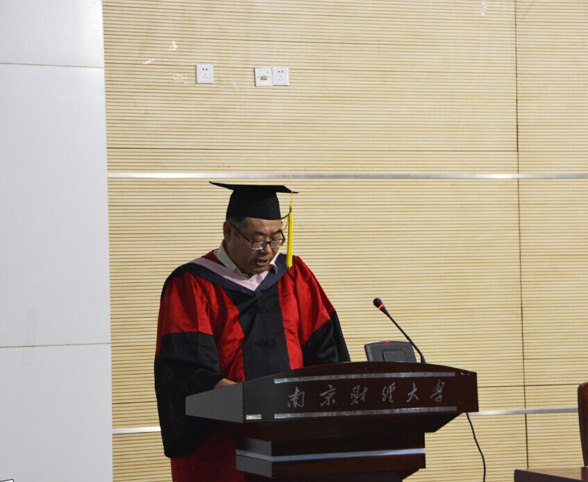 在庄严的国歌中学位授予仪式拉开序幕。陈耀辉副院长首先致辞,他向顺利完成学业并获得学士学位的同学们表示热烈的祝贺。同时,他对同学们寄予殷切希望:一是希望同学们永远乐观而坚强,富于理想与激情,体验真正的人生意义和价值;二是学会“终身学习”,将终身学习作为一种人生生存方式;三是在全球化的世界里不断增强自己的竞争力,不断地完善自我,高调做事,低调做人。最后,他向全体毕业生发出诚挚邀请,希望同学们在母校60周年校庆之日重回母校,共叙情谊,共庆华诞。