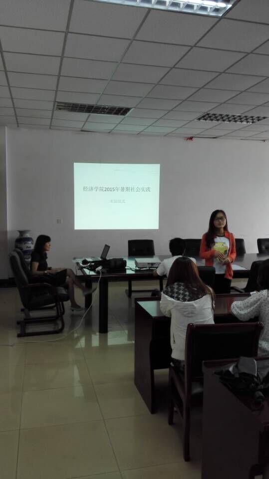 所取得的成绩,表达了对同学们脚踏实地、实事求是、做出成绩的期望。随后,在她的介绍下,具有暑期实践经历、取得过一定成绩的田婷婷同学向大家介绍了在活动组织策划、中期进行以及后期宣传方面的经验,以期对今年大家的实践得到促进。