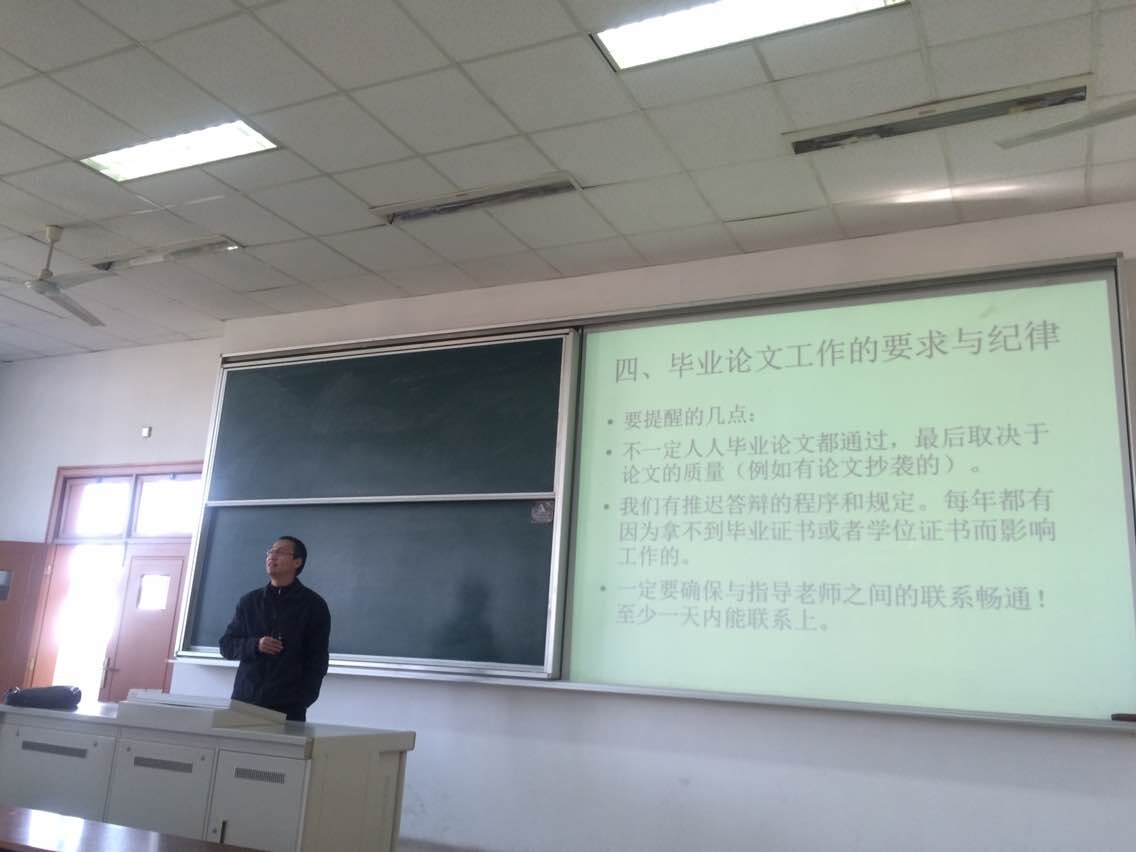 在教C403教室召开年级大会,就2015届毕业年级毕业论文写作、毕业实习及就业考研等事宜做出安排。海立方娱乐城