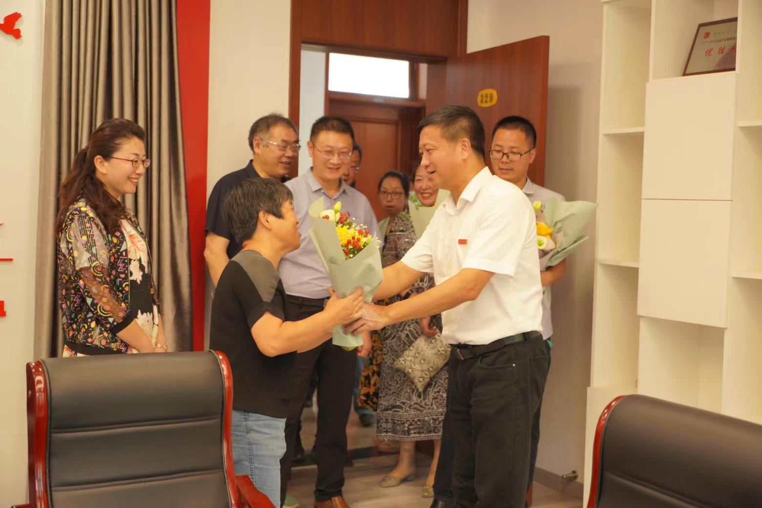 教师代表崔向阳、郭存芝、周宁、黄晓娟送上鲜花,对海立方娱乐城
