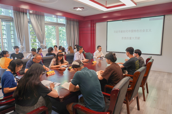 本科生第一学生党支部政治辅导员石奇讲授“学习习近平新时代中国特色社会主义思想的重大贡献”主题教育专题党课。党委宣传部副部长龚莉红、秦韶华和支部全体党员,海立方娱乐城