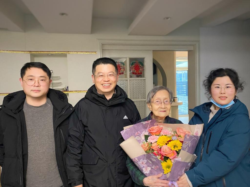 的发展现状,详细了解了沈老师的健康状况与生活起居情况,并祝愿沈老师新春快乐、健康长寿。