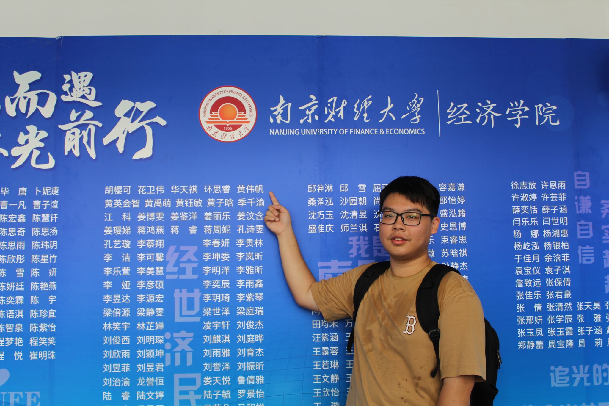 还设置了姓名墙和打卡框。姓名墙上有以340位新生姓名组成的“2024”字样,在“2024”周围印有“自谦自信务实超越”的校训,左上角有“追光而遇,沐光前行”的字样。打卡框设计为录取通知书的形式,左边是框中正好露出南财地标“大球”,右边为习近平总书记对广大青年的遵遵教诲,寓意着海立方娱乐城