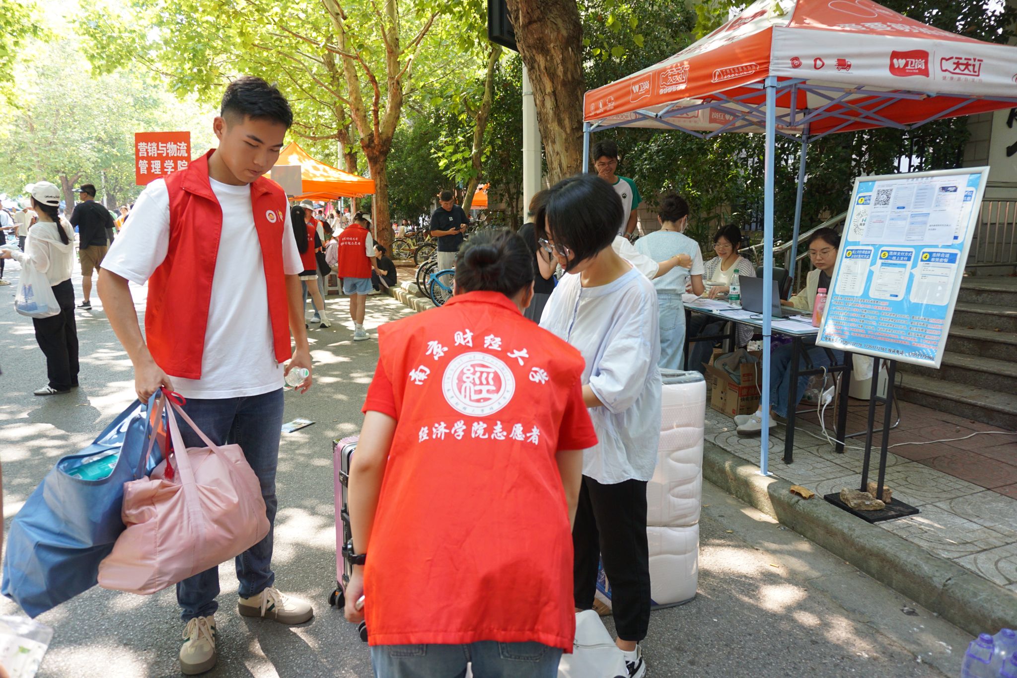 师生党员、志愿者们的身影,努力为初入校园的新同学提供全方位、全天候、全过程的服务与支持,将南财志愿精神之火代代传承。