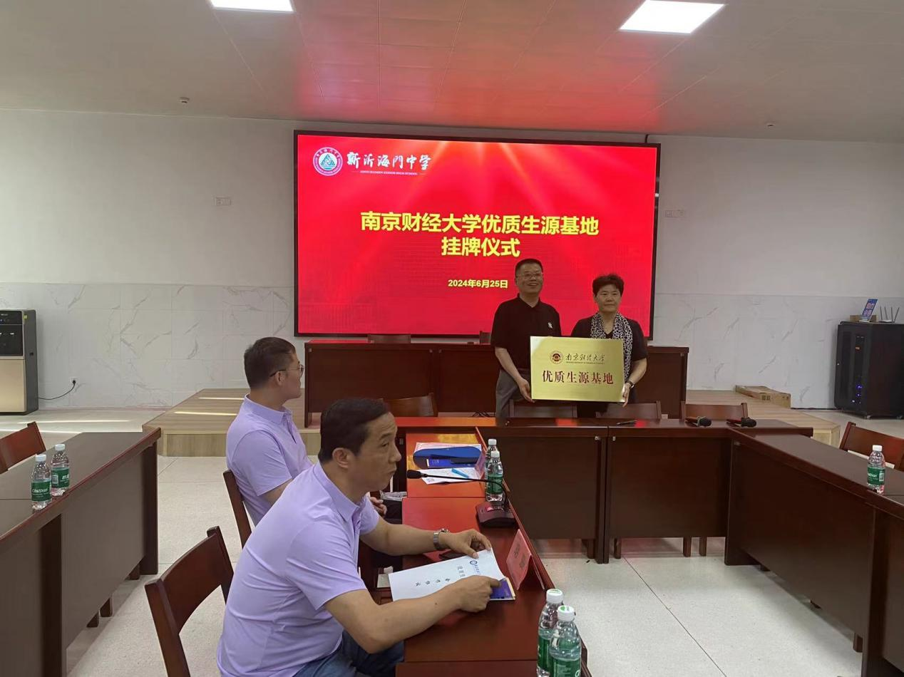 党委书记张圣兵、招生负责人张闻老师一行前往新沂海门中学,举行“优秀生源基地”签约挂牌仪式,新沂海门中海立方娱乐城