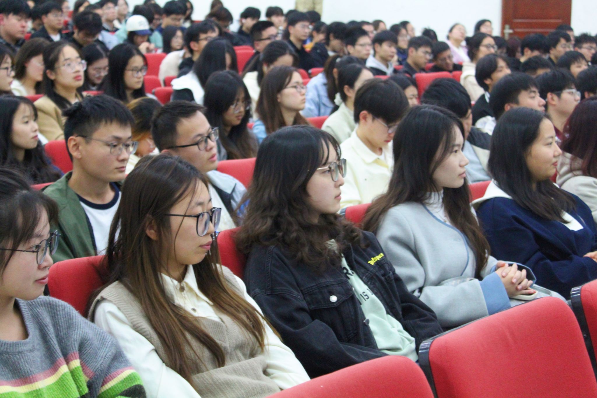 此外,何教授引用马克思的观点,特别强调了科学研究的目的在于认识真理。他指出,从本质上来说,真理是指客观事物及其规律的正确反映,科学研究的核心任务就是透过现象发现隐藏在背后的规律。何教授援引毛泽东同志在《实践论》中的一句话:“感觉到了的东西,我们不能立刻理解它,只有理解了的东西,才能更深刻地感觉它”,这正是体现了认识从感性阶段上升到理性阶段。最后,何教授呼吁同学们积极地将理论联系实际,并对同学们今后的学习表达殷切期望。