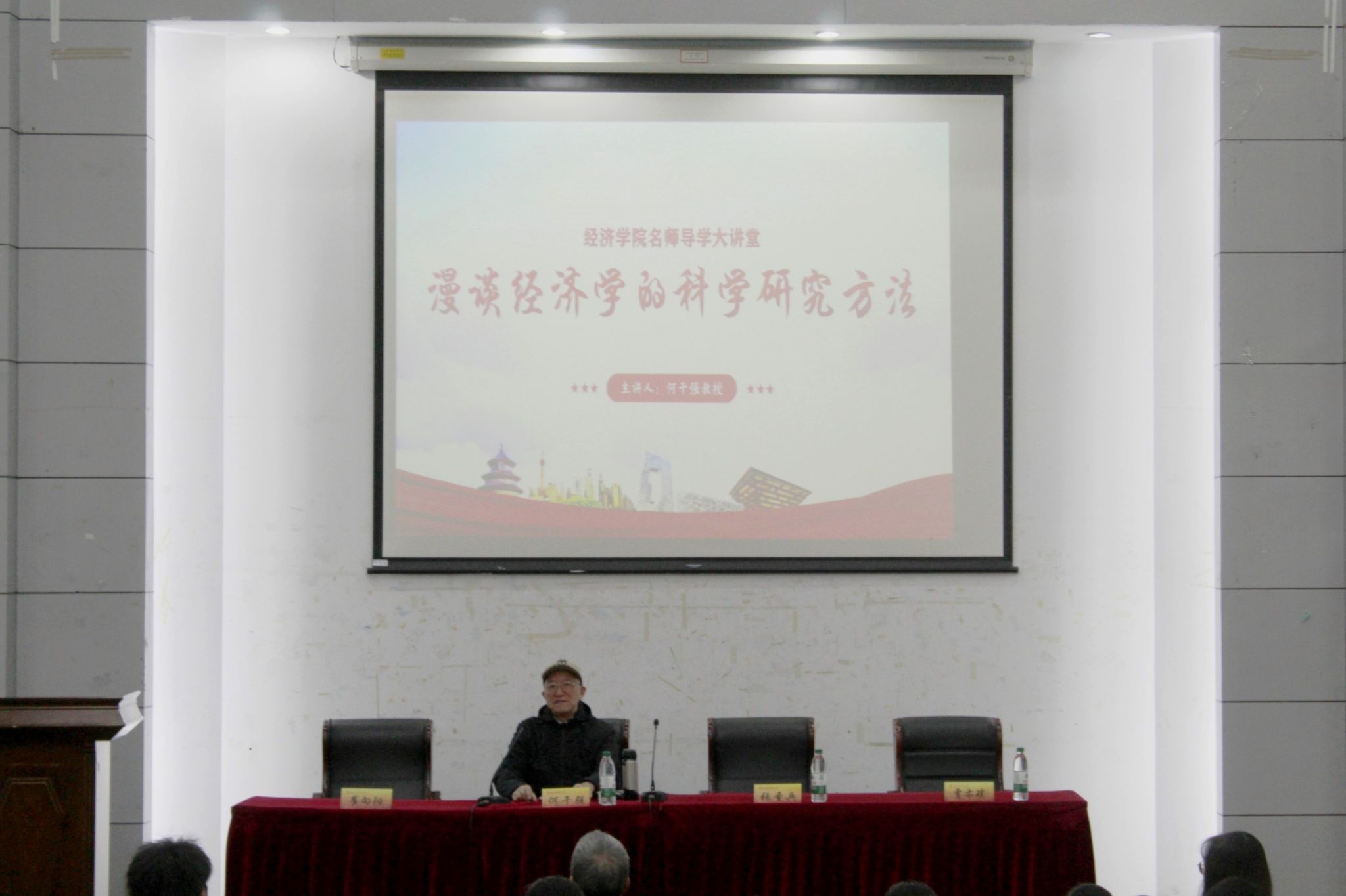 11月6日下午,海立方娱乐城 何干强教授做客名师导学大讲堂,作题为“漫谈经济学的科学研究方法”讲座,海立方娱乐城 党委书记张圣兵、党委副书记贾亦璞、副院长崔向阳出席,海立方娱乐城 全体研一新生和部分本科生参加此次讲座。
