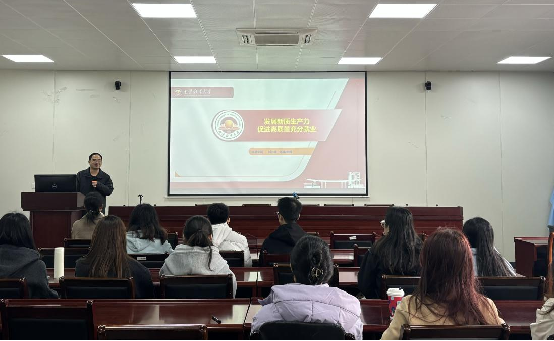 政治辅导员刘小峰院长在德经楼307会议室为研究生第一党支部讲授《发展新质生产力,促进高质量充分就业》的专题党课。研究生第一党支部书记周元春、学生党员参加学习。党课由研究生第一党支部书记周元春主持。