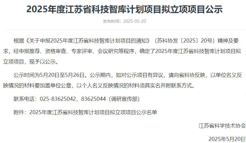 组织申报的2025年江苏省科技智库计划(智库)平台项目获准江苏省科学技术协会立项,海立方娱乐城