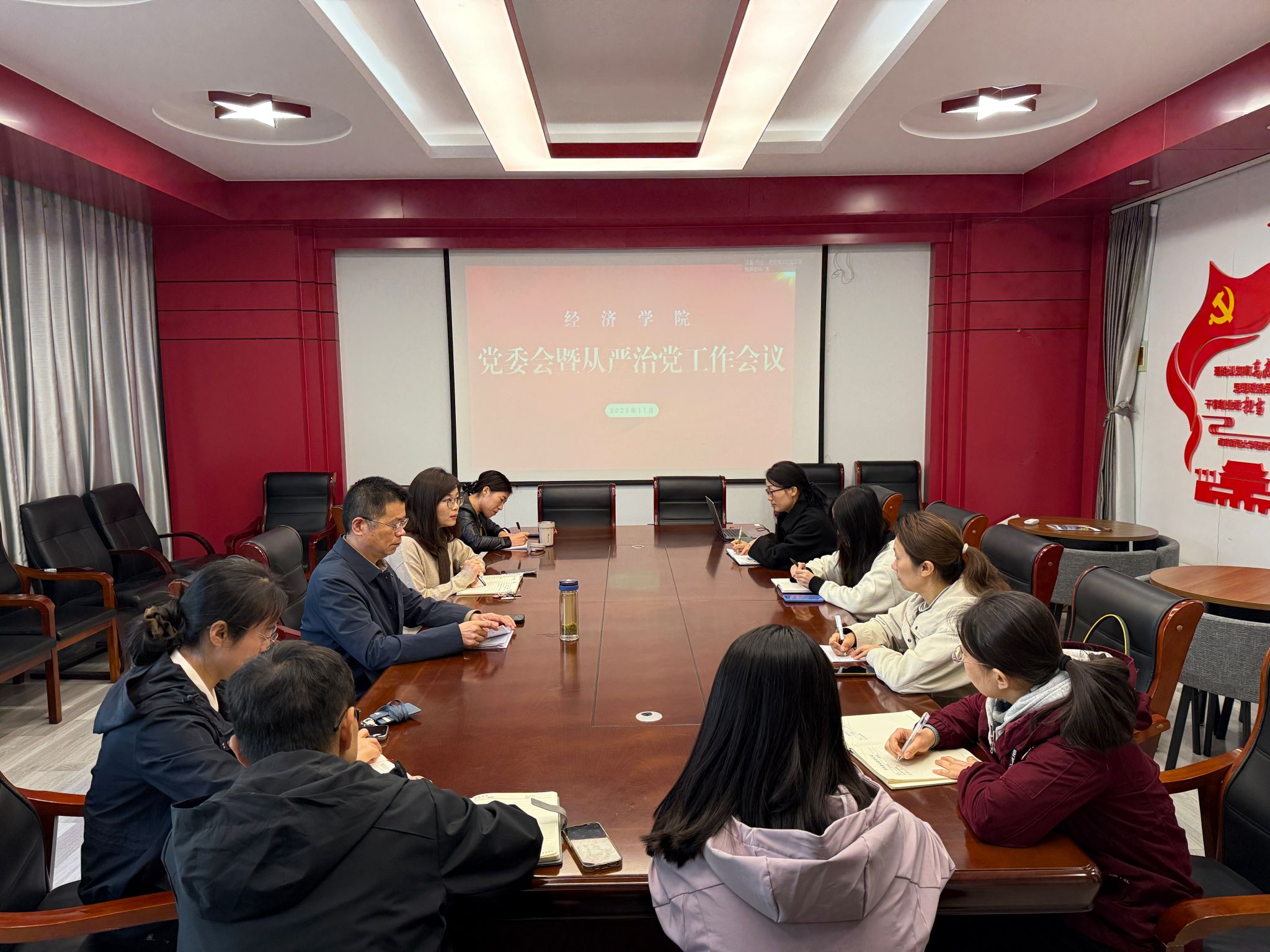 党委在德经楼329会议室召开全面从严治党工作会议。部分党委委员、全体党支部书记参加会议。
