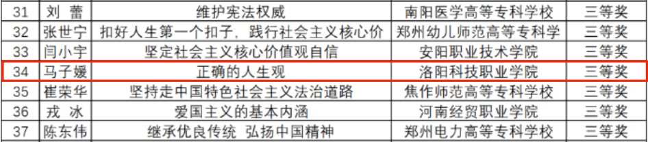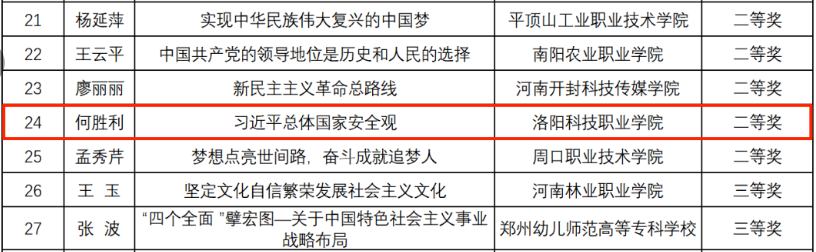 近日,河南省教育工委、河南省教育厅发布《关于全省高校思想政治理论课示范“金课”评审结果的公示》,海立方娱乐城 马克思主义海立方娱乐城 何胜利、张园园、马子媛三位老师的作品《习近平总体国家安全观》《不断推进全体人民共同富裕》《正确的人生观》获得河南省二等奖两项、河南省三等奖一项的优秀成绩。