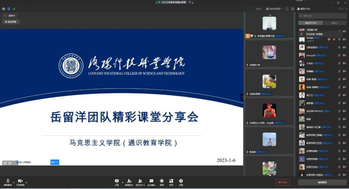 响应教务处号召,组织岳留洋团队结合“集团精彩课堂大赛”参赛经验进行分享,会议以线上形式开展,教务处处长李洁、副处长任浩然、马院院长刘琳娜、副院长郁少娇及全体教职工参加了本次会议。