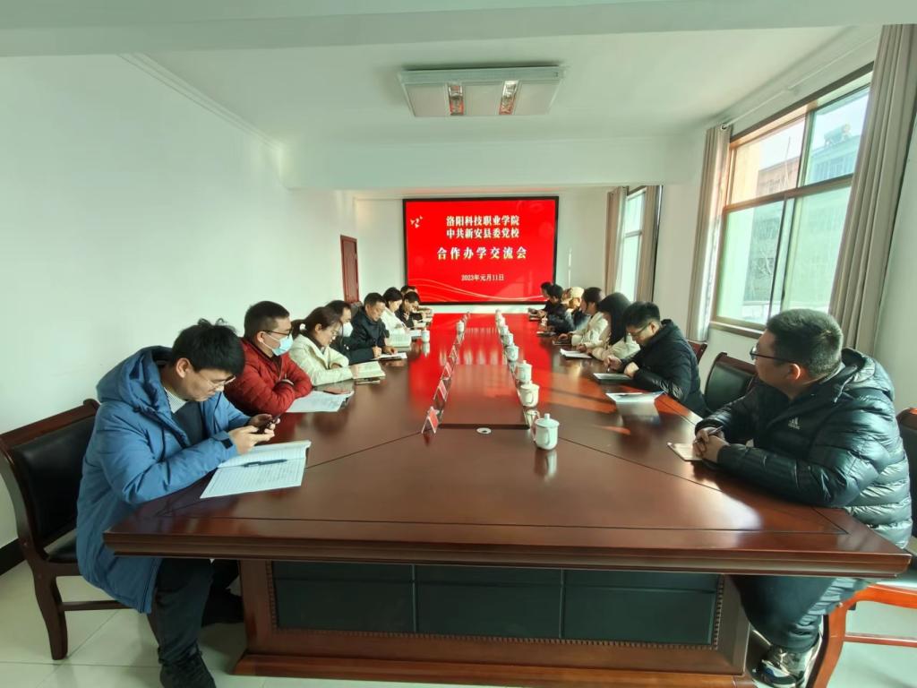 相关职能部门负责人一行10人到新安县党校就“院校合作办学”、“实践教学基地共建共享”等工作进行交流座谈。新安县委党校党委书记、副校长王国营、副校长韩玉辉及各科室负责人参加此次调研交流活动。