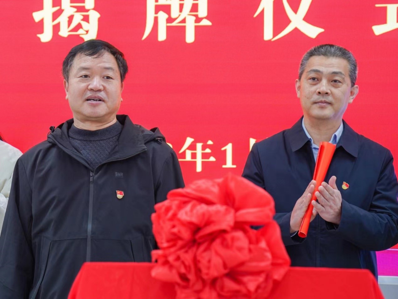 仪式最后,县委常委、组织部部长段红高和校党委书记刘茂钦共同为思政课实践教学基地揭牌。