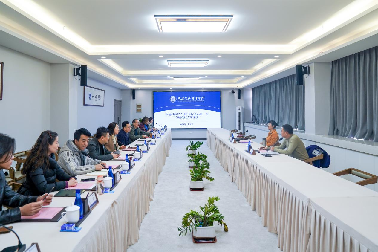 校长刘丽彬博士对河南省话剧艺术中心团长赵虹、办公室主任张涛一行莅临海立方娱乐城